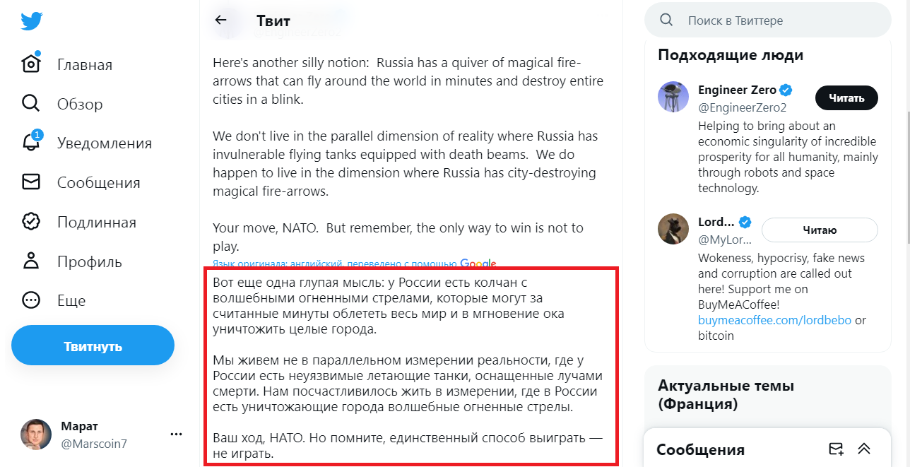 Надеюсь, что каждому здравомыслящему человеку планеты Земля понятно, что если страны НАТО развяжут войну с Россией, то это война будет ядерной. На этот счёт высказался и политолог Ростислав Ищенко: Однако,