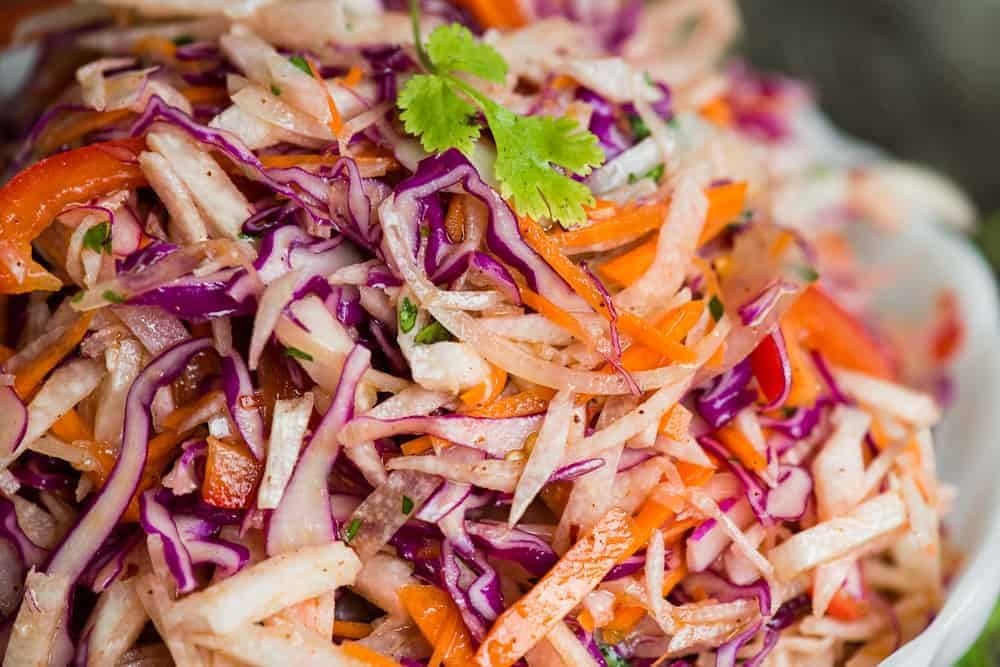 Jicama Slaw — это хрустящий, свежий, легкий и сытный полезный веганский салат, наполненный тертыми овощами и заправленный легким и острым соусом винегрет.Что Такое Джикама?