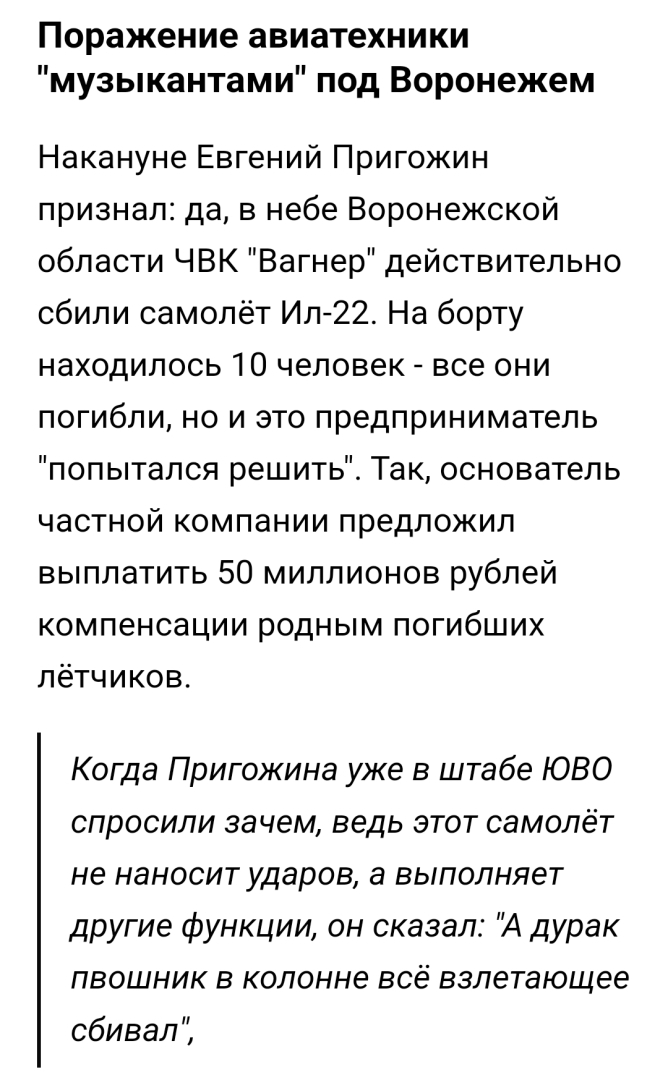 Батько мог сам забрать в любой момент. он давно защищал уже вагнер. для этого шага не нужно было погибать 10 летчикам