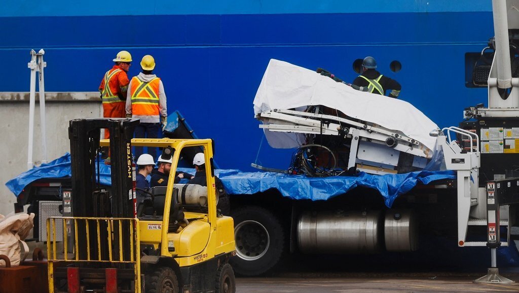 По информации телеканала, обломки батискафа были доставлены на коммерческом корабле Horizon Arctic. В результате, на берегу были выгружены различные части батискафа, включая носовой обтекатель, корпус и хвостовую часть.