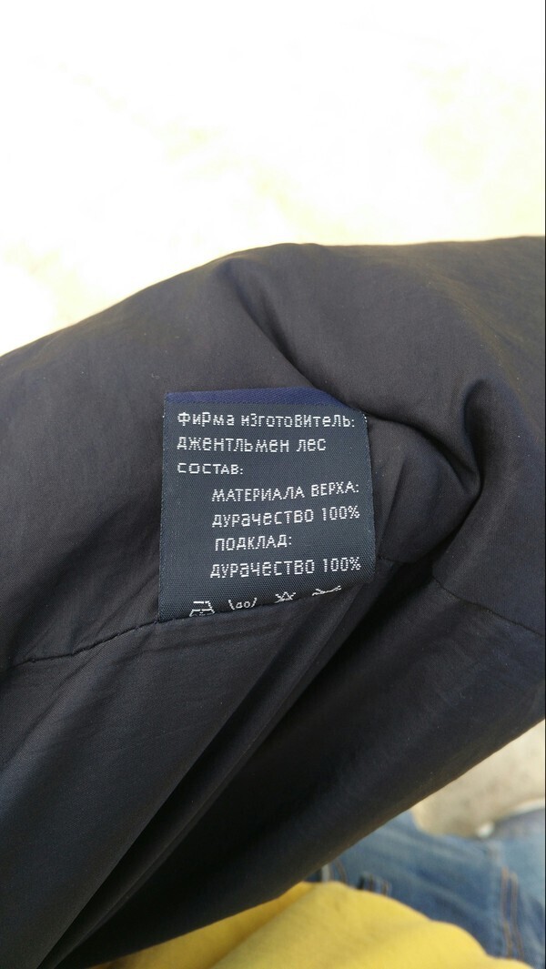 Для одежды на ярлыке обязательно указываются соотношение натуральных и химических волокон в составе ткани самого изделия и подкладки, символы по уходу за изделием. Но про материал дурачество – ни слова.