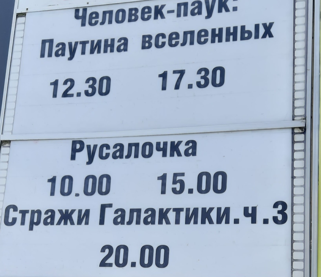 Вот такая афиша висит на центральной улице у кинотеатра, я специально обрезал фото, чтобы не рекламировать заведение. Как не сложно догадаться, указанные фильмы официально в РФ не прокатываются.