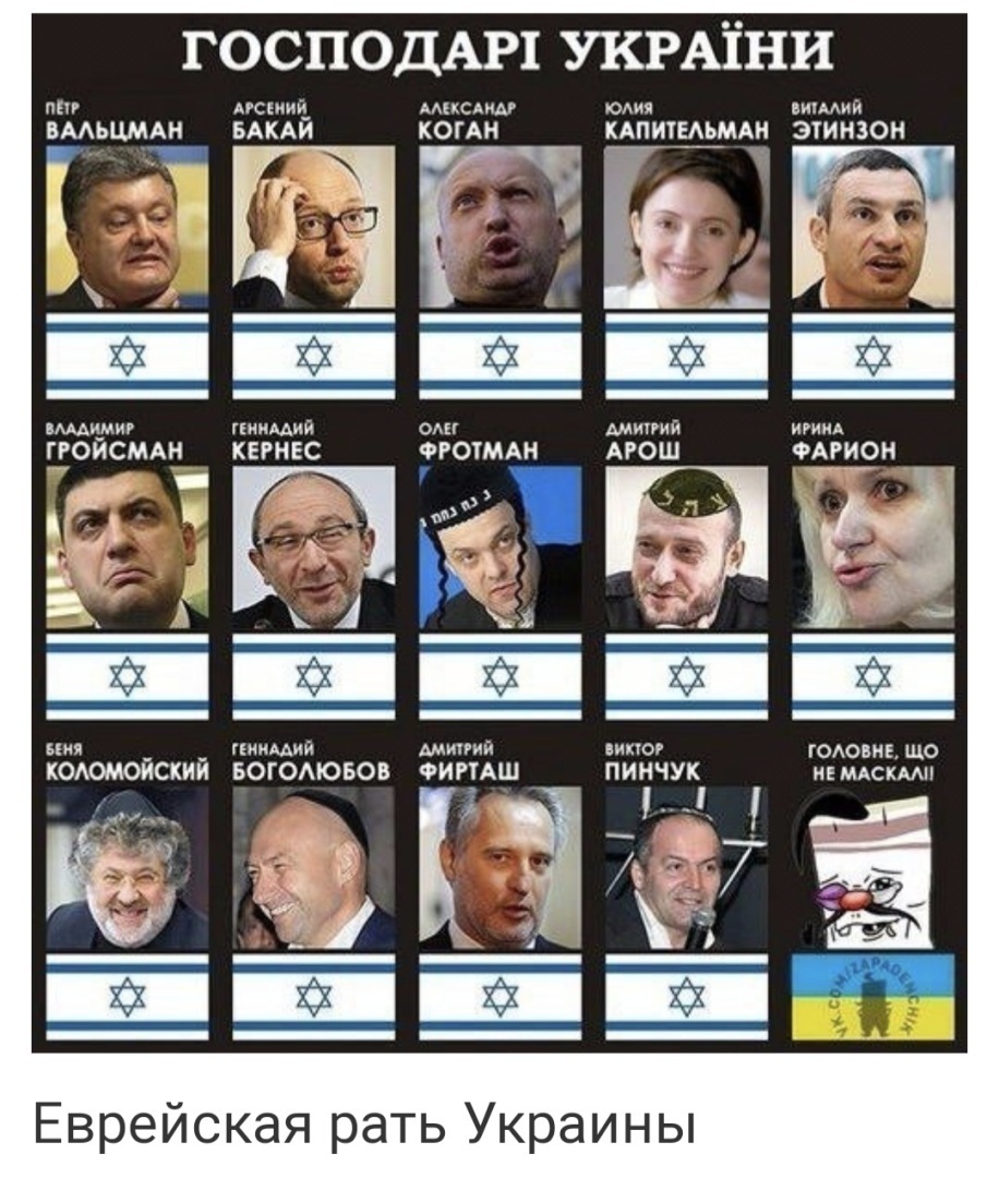Ая вам отвечал? И причём тут все?? Я сам украинец и я сам себебандеровец? Глупости не пишите! Есть украинцы, а есть жиды. Есть почитают Предков, а есть для какого эти Предки отвратительны! Плевелы от зёрен отделите! У бандеровцев их Бог - жид Бандера!!