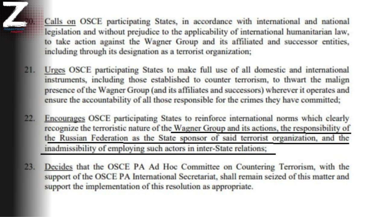 А все потому, что несколько дней назад президент рассказал, что ЧВК "Вагнер" финансировали из госбюджета. И по заключениям Парламентской Ассамблеи ОБСЕ - "Вагнер" — террористы, а Россия — страна-спонсор терроризма.