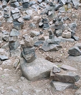 Гид терпеливо дождалась, когда группа туристов соберётся возле огороженной площадки, на которой было множество каменных пирамидок совершенно необычных форм.