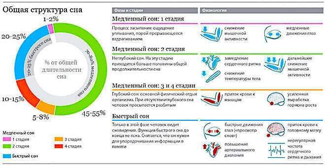 Медленный сон, в свою очередь, состоит из нескольких стадий: