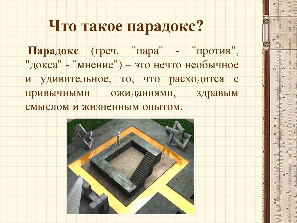 Парадокс - это утверждение или ситуация, которые на первый взгляд кажутся неправдоподобными или непонятными, противоречат здравому смыслу или общепринятым правилам логики. Они заставляют нас задуматься и переосмыслить наши убеждения.