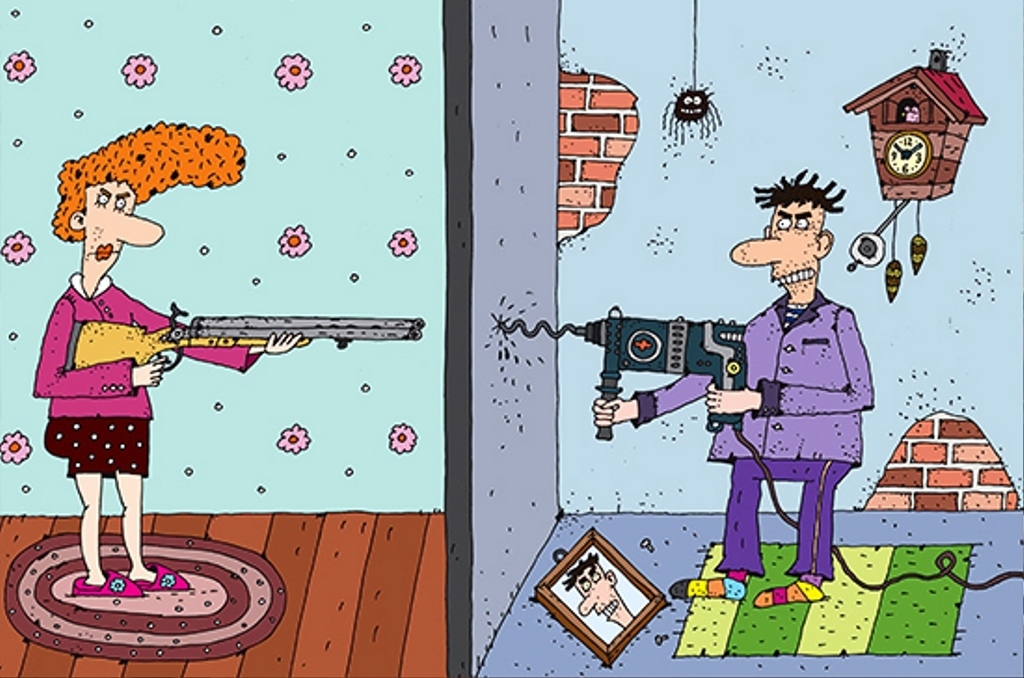 Мне приходилось часто переезжать с одного места на другое. Соседи попадались абсолютно разные. Естественно, все хорошие. Разные по децибелам... В одном месте было, что в субботу соседи сверху рок включали, а в воскресенье соседи снизу – классику. В другом месте – душевные песни под гитару под окном. Поэтому сейчас живу на высоком этаже. В данное время соседи у меня очень тихие. Даже напоминают эту парочку, которая бранится в подъезде.