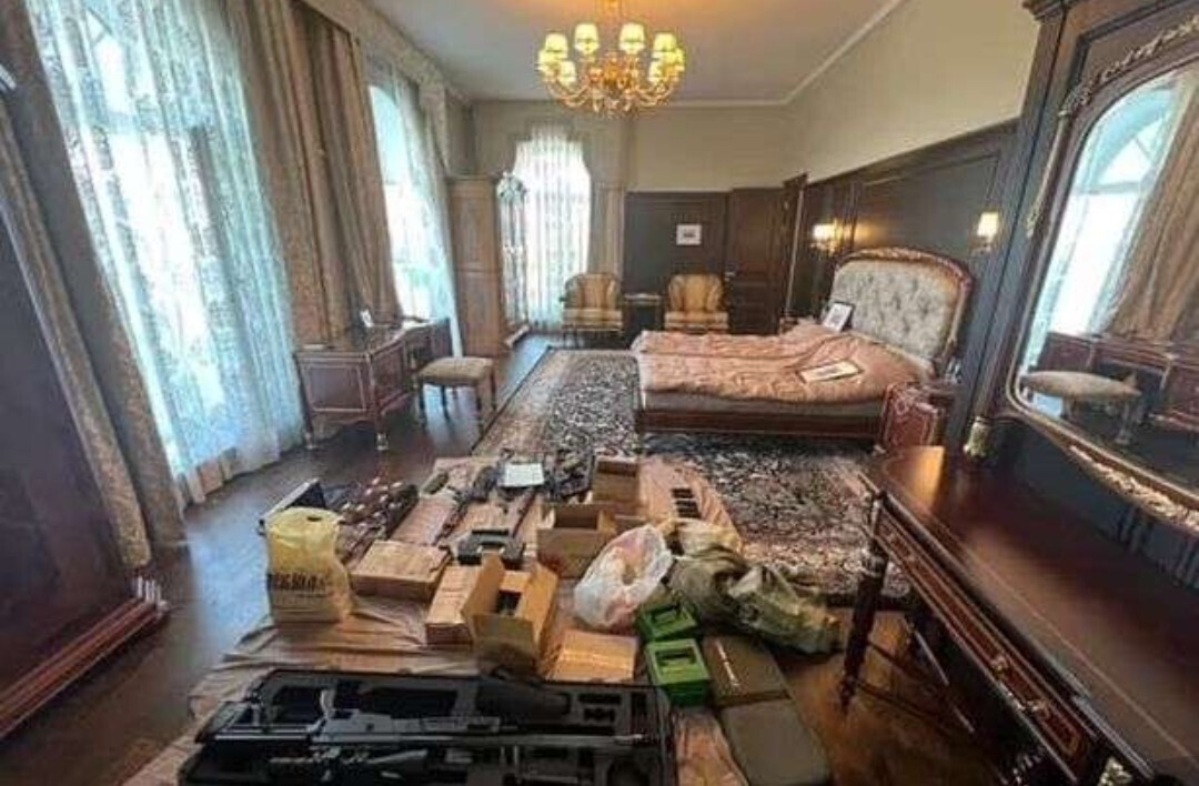 В ходе обыска в его особняке также были обнаружены большое количество наличных денег и золотых слитков, оружие и паспорта, а снимками обыска поделилась газета "Известия".