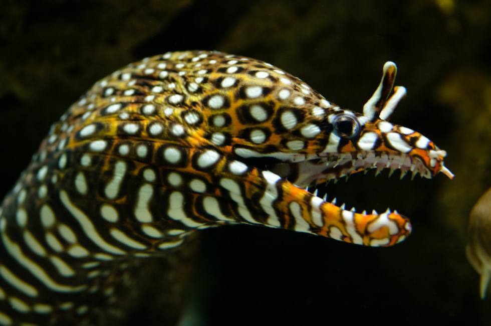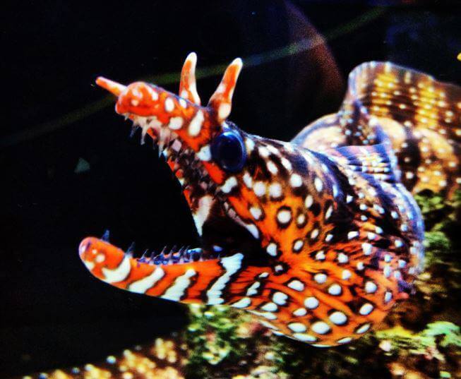 Это необычайно ярко окрашенный представитель семейства Муреновых (лат. Muranidae). Особое очарование этой рыбе придают мясистые «рога», растущие над глазами.