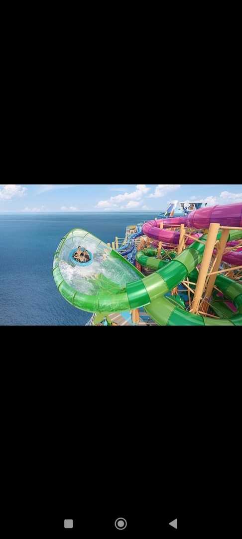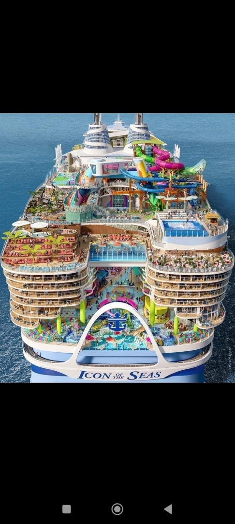 У лайнера 20 палуб с 7 бассейнами, огромные водные горки и водопады. Экипаж состоит из 2350 человек, а само судно вмещает в себя 7600 пассажиров.