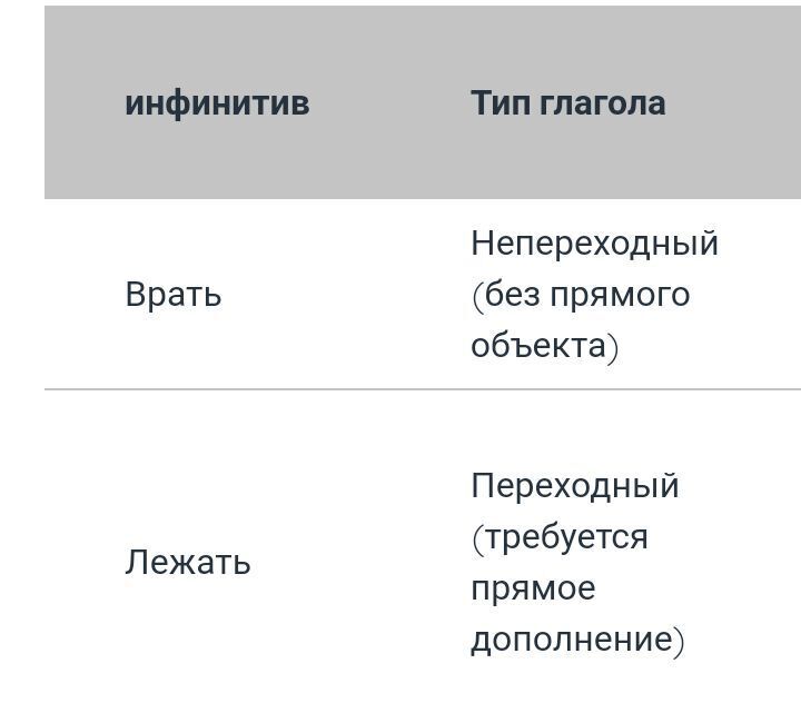Ключевое различие между двумя глаголами заключается в том, что ложь является непереходным глаголом, то есть за ним не может следовать прямое дополнение; и lay является транзитивным, то есть он должен иметь прямой объект. Если вы растянетесь на своей кровати, вы ляжете на свою кровать. Если вы кладете ребенка в кроватку, вы кладете его в кроватку ( ваш ребенок является непосредственным объектом). Другими словами, вы не можете что-то соврать , но вы должны что-то соврать .