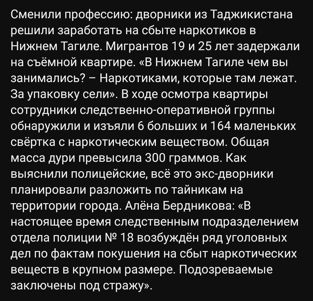 Сбыт наркотиков в крупном размере. Житель Таджикистана решил легко заработать в Нижнем Тагиле