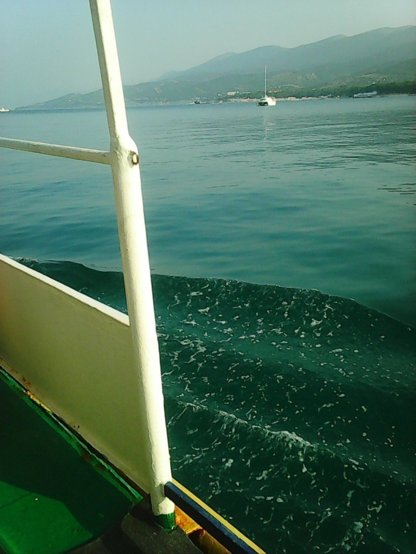 Как только снимаетесь с якоря, тут же перестает укачивать. Жизнь приобретает новые краски. Снова солнце вам приветливо светит. Свежий ветер приятно дует в лицо. Жизнь прекрасна! Я восклицаю: «Слава Богу!». И только потом замечаю, что девушка, сидящая напротив, тоже оживилась , лицо порозовело. Она улыбнулась и , вознеся руки к нему, сказала: «Слава аллаху!». Сестра по несчастью, так сказать. Тоже, видно, укачало.