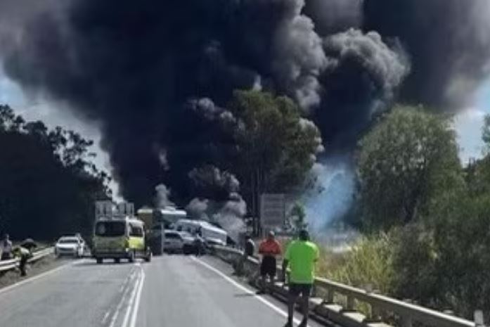 Местные СМИ сообщают, что всего в аварии участвовало шесть автомобилей. Пострадали 6 человек (один госпитализирован в критическом состоянии). Сгорело 3 авто.