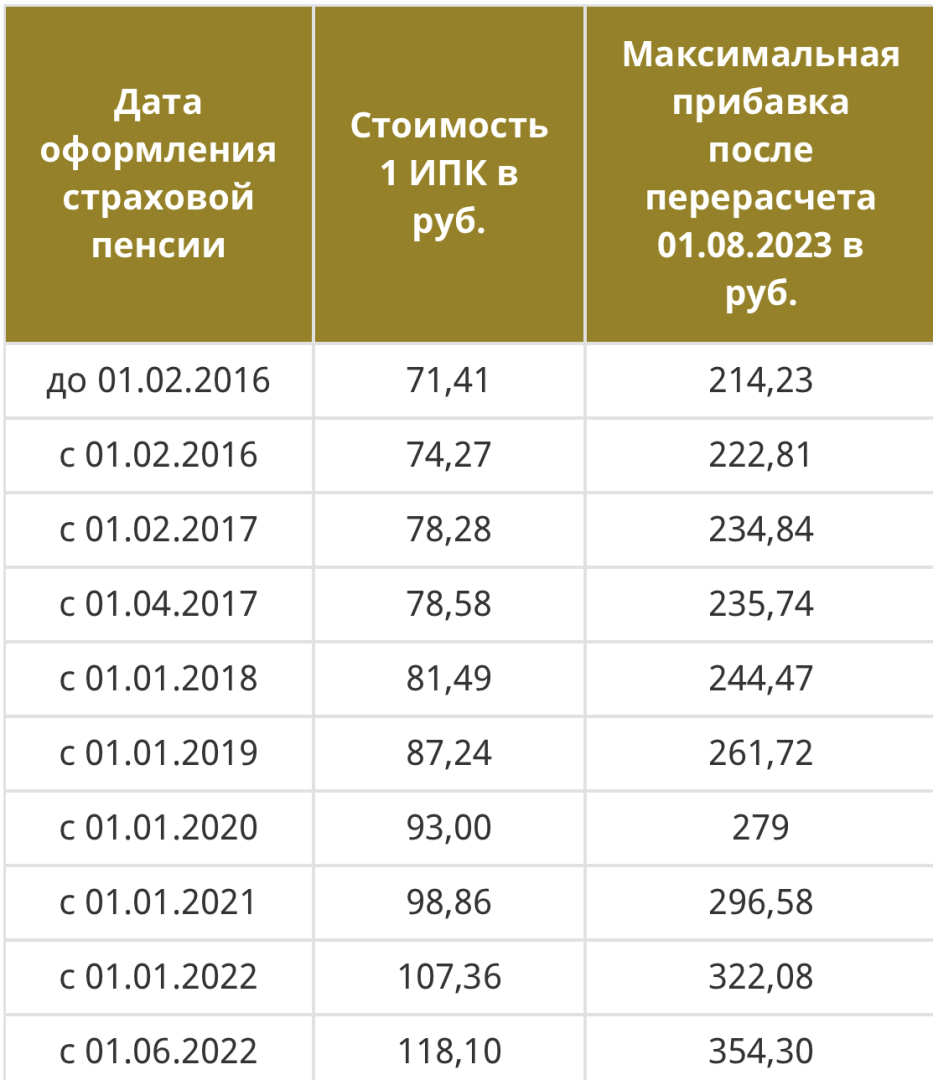 Также стоит отметить, что пересчет пенсии ограничен 3 пенсионными баллами. Даже если Вы заработали 10 пенсионных баллов, то прибавка к пенсии будет рассчитываться исходя только из 3-х баллов.