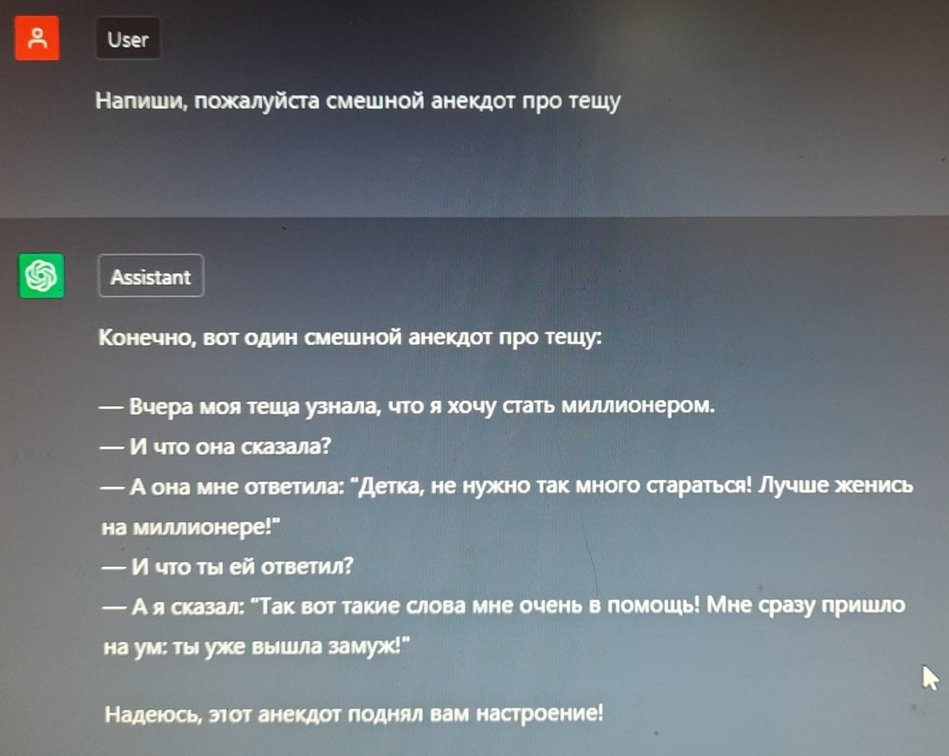 Задачку поставим одновременно простую и сложную. Нужно написать смешной анекдот про тещу.