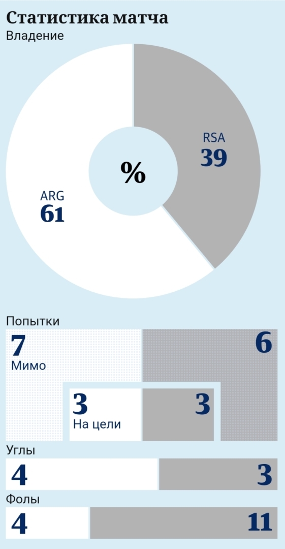 Несмотря на всю их аккуратную работу на подходе, аргентинцы выглядели неспособными угрожать Кейлин Сворт в воротах ЮАР, и их первые удары по воротам были нанесены только во втором тайме.