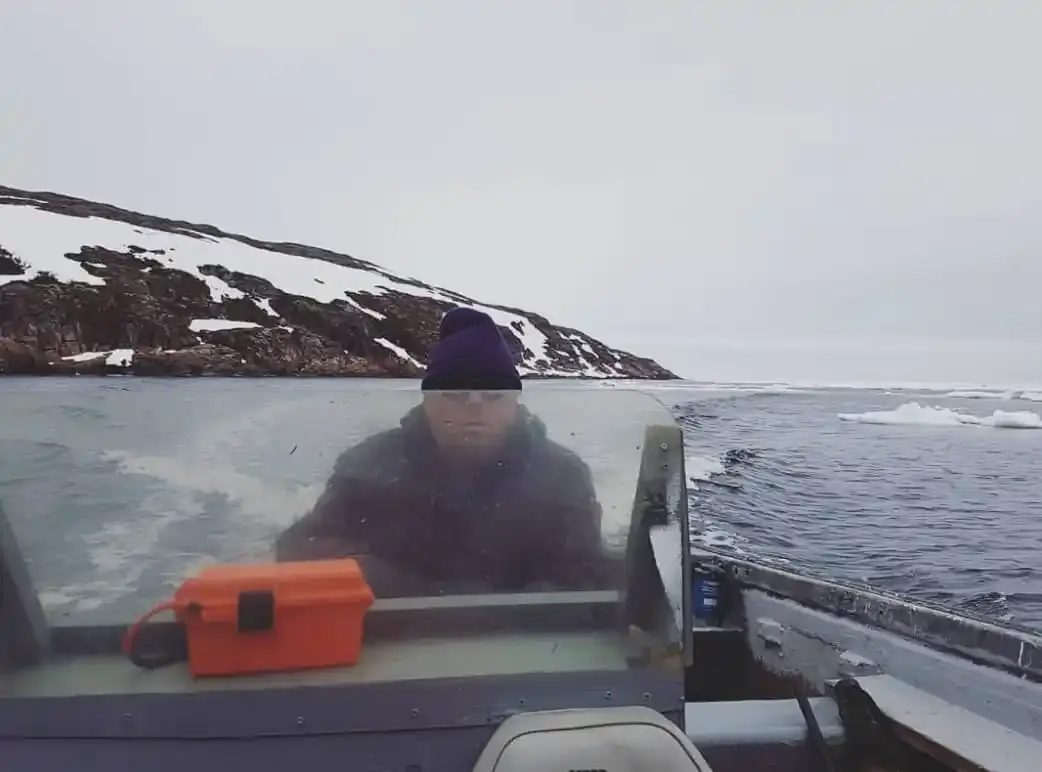 Несмотря на то, что они все еще планировали порыбачить до конца дня, они согласились, что важно еще немного приблизиться к айсбергу. Теперь им всем стало любопытно. Им нужно было выяснить, что лежало поверх этого куска льда. Все трое подошли, чтобы рассмотреть его поближе. По мере того как они приближались, становилось все холоднее и ветренее.