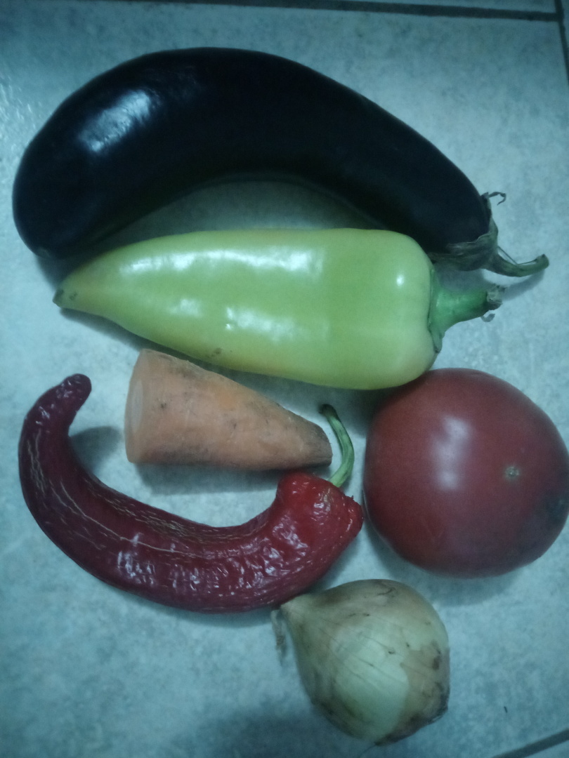 Ингредиенты - баклажаны ( на юге говорят сининькие), лук репчатый, перец болгарский, морковь, помидоры, любое на ваш вкус растительное масло.