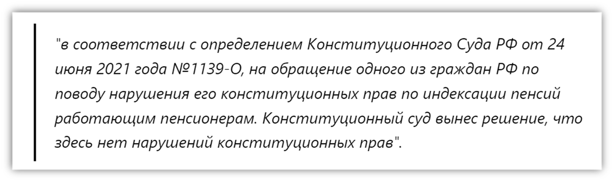 При этом в 2020-м в Конституцию РФ были внесены поправки, согласно которым перед законом все пенсионеры равны. То есть индексация должна проводиться, и не важно, работает человек или нет. Это справедливо, ведь инфляция бьет по карману всем одинаково.