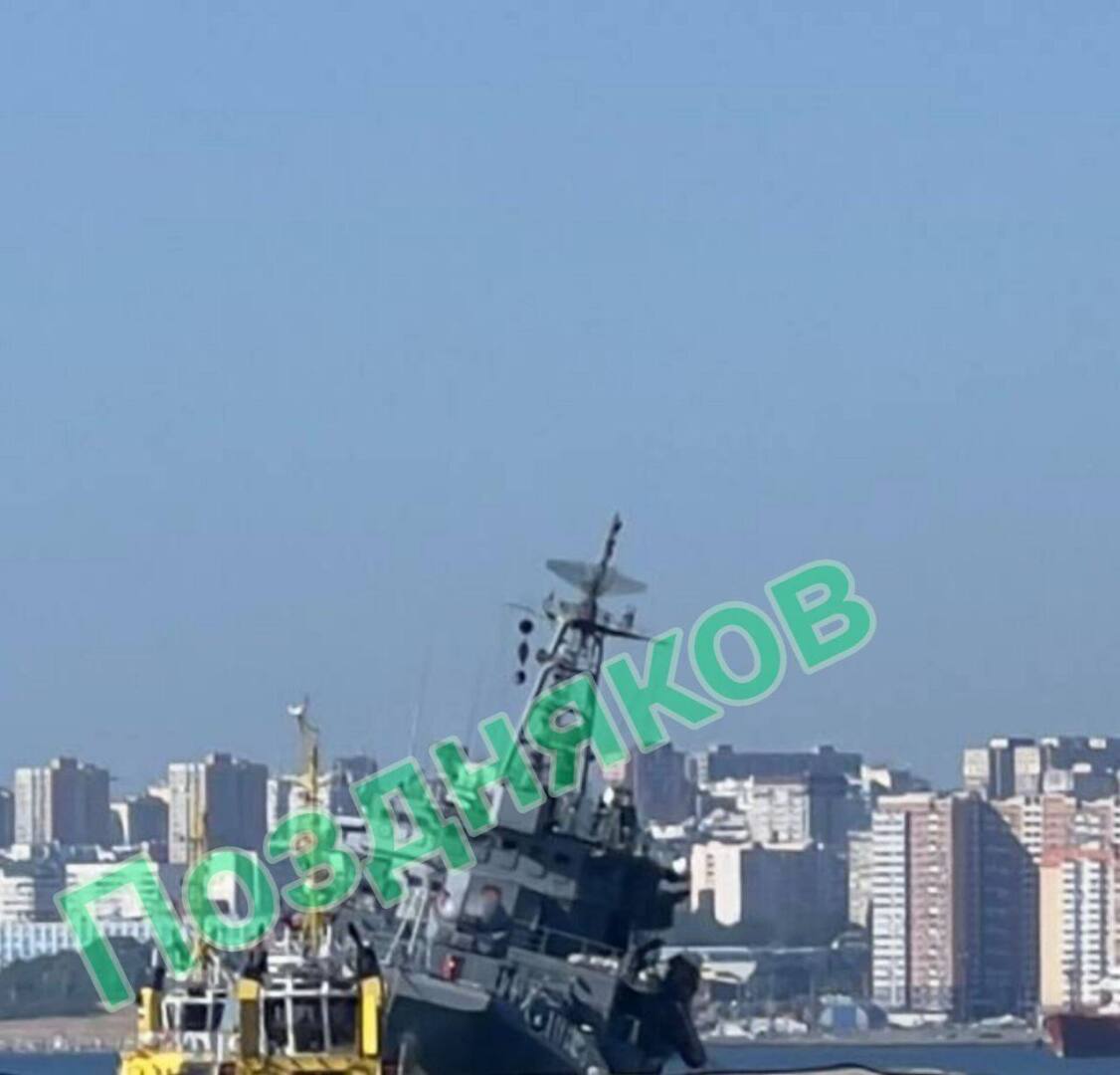 ""В порту Новороссийска вследствие атаки украинского морского беспилотника, вопреки заявлению Минобороны, был повреждён большой десантный корабль проекта 775 (видимо, "Оленегорский горняк").