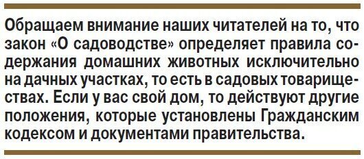Планируется установить разрешенное количество животных, которые люди могут держать на своих садовых и огородных участках. Вероятно, это будет зависеть от числа владельцев и пользователей участка, а также от его размеров. Первый заместитель председателя комиссии Общественной палаты РФ по развитию агропромышленного комплекса и сельских территорий, Олег Сирота, предложил еще более широкий подход, считая необходимым определить количество животных, которых можно содержать в личных подсобных хозяйствах, где разведение разрешено не только кур и кроликов, но и других животных.