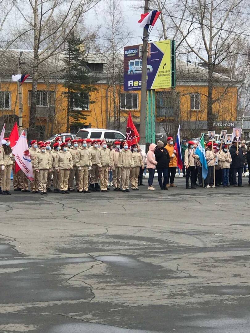 В городе Вихоревка Иркутской области школьники из движения «Юнармия» прошли шествием, держа в руках портреты президента Владимира Путина, пишет «Тайга.Инфо».
