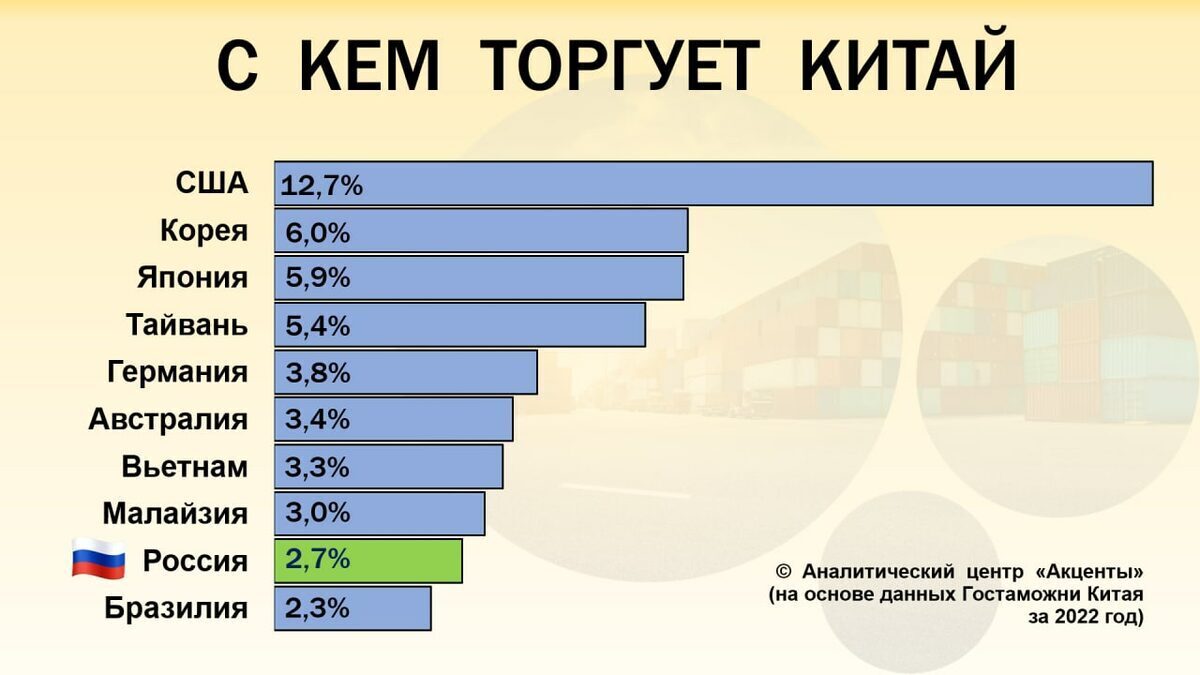 Самый большой оборот с США, с Россией в основном поставки природных ресурсов