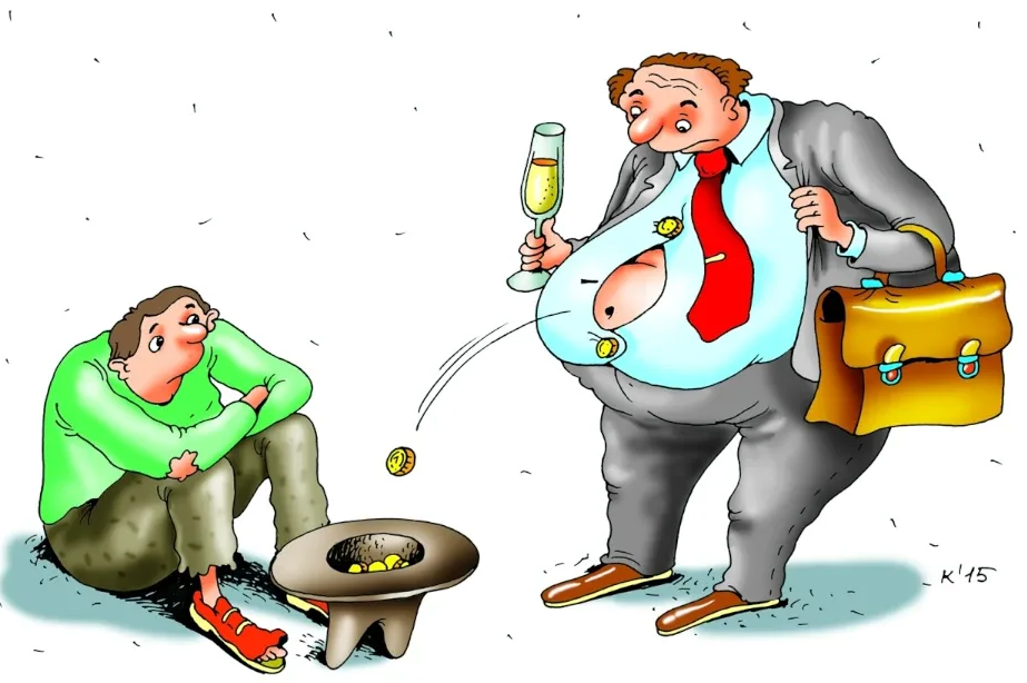 У богатых отношение к жизни совсем другое появляеться высокомерие Типа :работяги могут жить и на макарошках