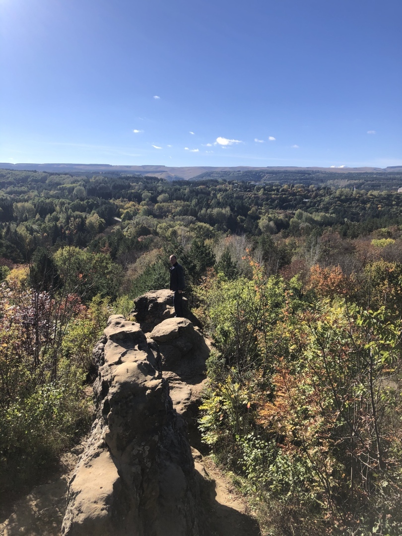 Пройдя вверх и влево от веревочного парка, можно наткнуться на группу скал, которые имеют красный цвет, на верху скалы красуется величественная статуя орла.