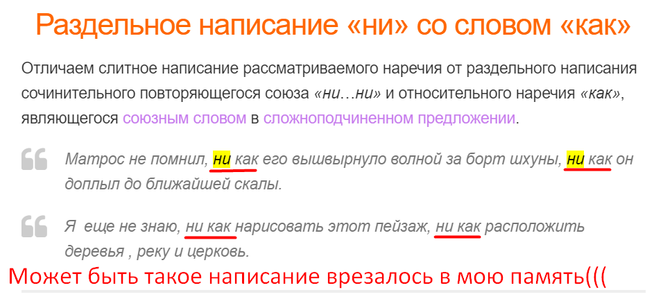 А вот может быть и поможет. Возможно дети будут знать, что "никак" пишется слитно