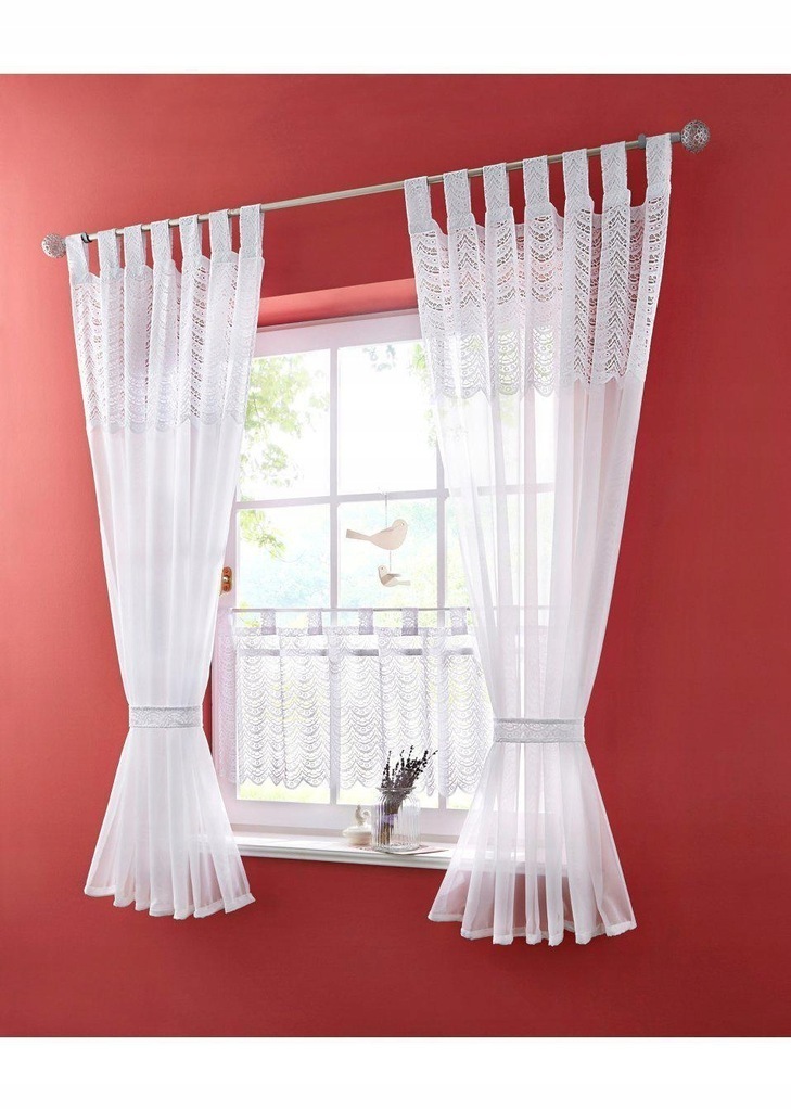 Пошив занавесей своими руками на кухню за пару часов из вышитой ткани на петлях из кружева для круглого карниза.