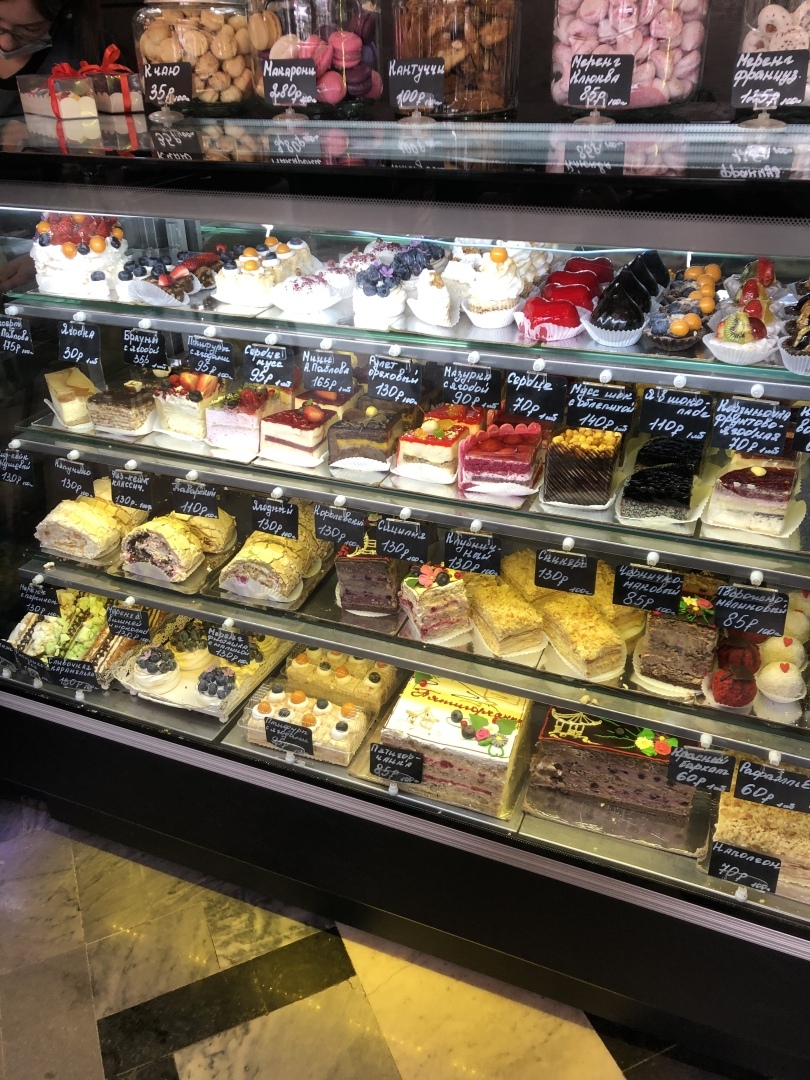 Прилавок просится в рот, там такие красивые пирожные, мимо пройти нельзя, а главное вкусные.