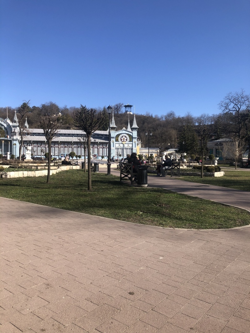 И наконец парк «Цветник»прекрасное уютное, чистейшее и ухоженное место. Кстати посмотрев фильм «Чебурашка я узнала места из парка «Цветник», а вы !? При входе твой взор обращает внимание на все , начиная от клумб, арт объектов и гротов, заканчивая конечно же знаменитой Лермонтовской галереей. В принципе если ты попал в этот парк, можно уже никуда не рваться, здесь и виды и красоты и водичка, все есть.А так же можно купить сувениры.