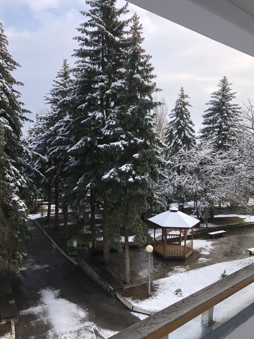А какой вид из окна , сколько раз ездили, столько раз на и попадались номера с видом на гору Машук, это потрясающее зрелище с видом на сосны и гору. Прекрасные виды. Стоя на балконе, можно насладиться не только прекрасным видом из окна , но и пением птиц, и конечно как во всех этих местах белочками,которые прыгают по деревьям сосен. Когда гуляешь по территории , то они спускаются к тебе за орехами. На территории есть детские площадки, теннисный корт и часовня.