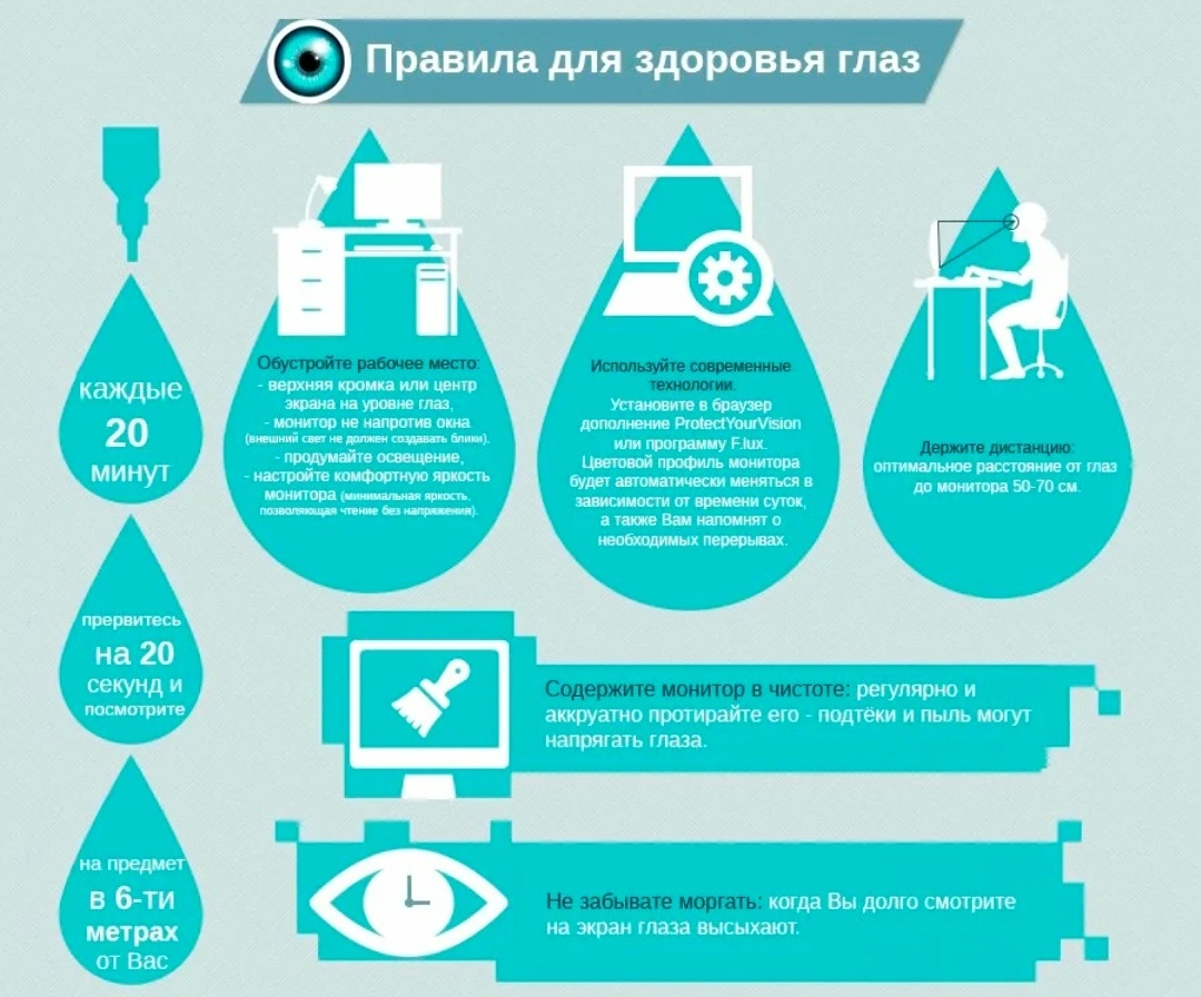 Составляющие действий человека, для поддержания здоровья органов зрения.