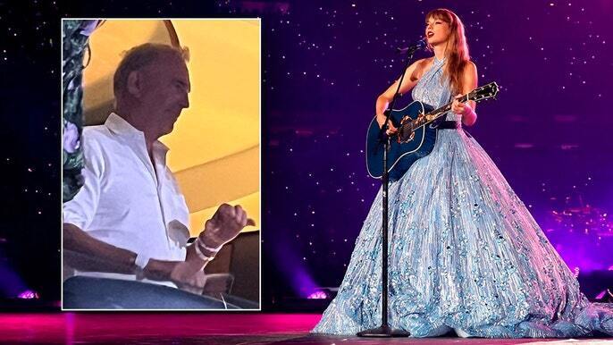 Кевин Костнер был потрясен, наблюдая за выступлением Тейлор Свифт на стадионе SoFi вместе со своей дочерью. (Фоновая сетка / Getty Images)