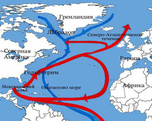 Гольфстрим – это океанский течение, которое начинается в районе Мексиканского залива и тянется к северо-востоку через Атлантический океан, достигая Европы. Это течение играет важную роль в регулировании климата на Земле, так как переносит тепло из тропических регионов на север.