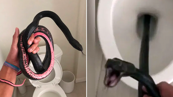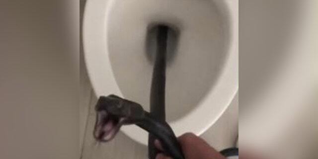 20-секундный вирусный ролик показывает, как змею вытаскивает из унитаза и держит в руках сотрудник. В какой-то момент кажется, что он кусает сотрудника за руку и даже шипит в камеру.