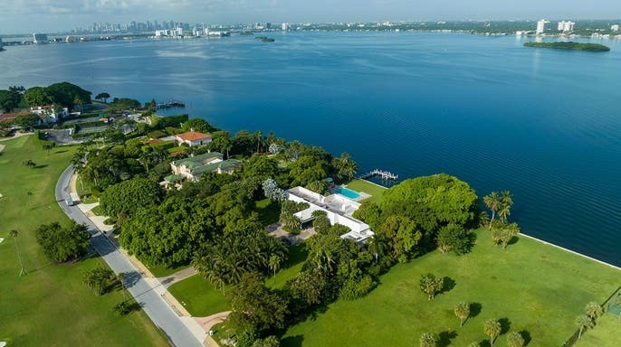 Дом, расположенный в бункере миллиардеров в Майами , был построен в 1965 году и расширен в 1985 году. Его площадь составляет 9 300 квадратных футов, три спальни и три ванные комнаты на участке площадью 2,8 акра.