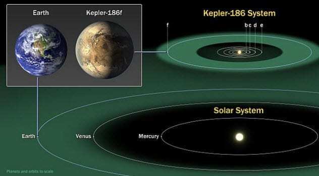 Kepler-186f - экзопланета, вращающаяся вокруг звезды Kepler-186 примерно в 500 световых годах от Земли. Обнаруженная в 2014 году, это первая экзопланета размером с Землю, которая вращается в обитаемой зоне своей звезды.По размерам меньше, чем на 10 процентов больше Земли, это самое близкое “соответствие” нашей родной планете. Любые другие сходства, такие как плотность, неизвестны. Но предположительный скалистый состав может быть предположен просто на основе размера экзопланеты.Как его земные размеры, так и расположение в обитаемой зоне - вот что делает Kepler-186f более вероятным кандидатом на размещение жизни. Однако наличие воды не было подтверждено из-за отсутствия надлежащей информации, такой как температура.Поскольку Земля - единственное известное нам место обитания жизни, теория заключается в том, что место, подобное Земле в других отношениях, также может быть домом для какой-то известной нам формы жизни.