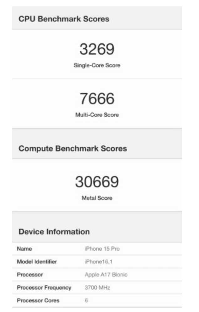 Недавно в интернете появились результаты тестирования нового процессора Apple A17 Bionic в Geekbench, которые указывают на его высокую производительность по сравнению с будущим конкурентом Qualcomm Snapdragon 8 Gen 3. Согласно опубликованным данным, процессор Apple достигает более высоких показателей в одно- и многоядерной производительности, чем Snapdragon. В частности, Apple A17 Bionic набрал 3269 и 7666 баллов, а Snapdragon 8 Gen 3 - 2223 и 6661 баллов соответственно.