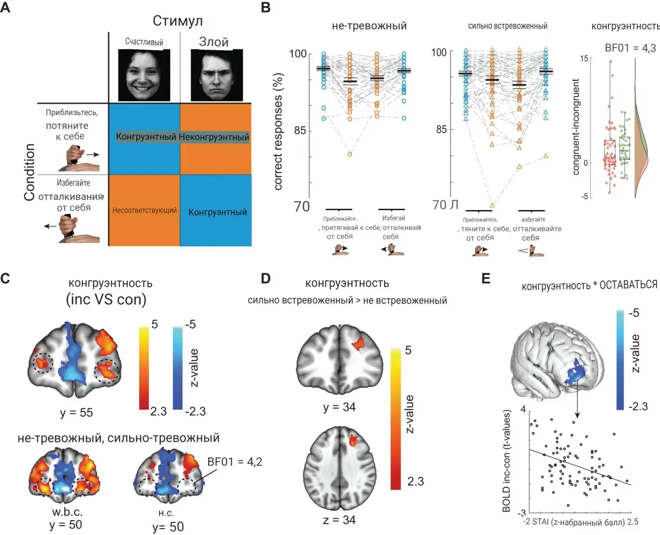 Брамсон и Мейер изучили результаты сканирования мозга, чтобы увидеть, что происходит у тревожных и не тревожных людей в смоделированной социальной ситуации. "Испытуемым показывали счастливые и сердитые лица, и они должны были сначала переместить джойстик в сторону счастливого лица и в сторону от сердитого лица. В определенный момент они должны были сделать обратное действие: двигаться к сердитому лицу и отходить от счастливого. Это требует контроля над нашей автоматической тенденцией избегать негативных ситуаций".