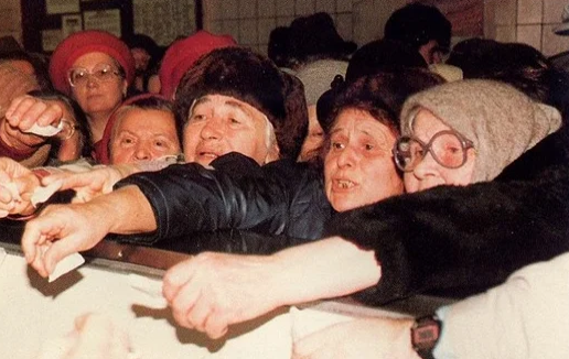Вам что так хочется пить с общего стакана?В СССР в очередях люди были вежливыми и добродушными.А когда подходила их очередь и если кто то оказывался впереди него,то его могли либо прирезать либо просто затоптать.