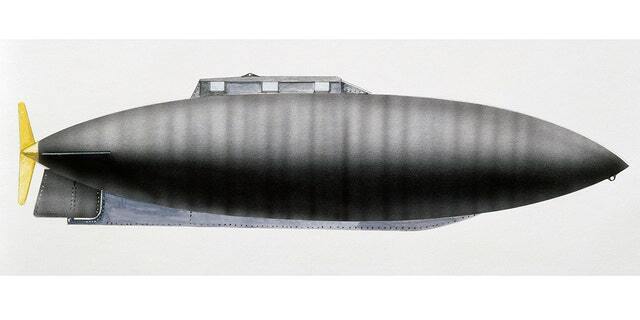 Среди них: трубчатая сигарообразная форма и двойное питание — электричество для подводного плавания , внутреннее сгорание для работы на поверхности, примерно так же, как неатомные подводные лодки все еще используются сегодня.