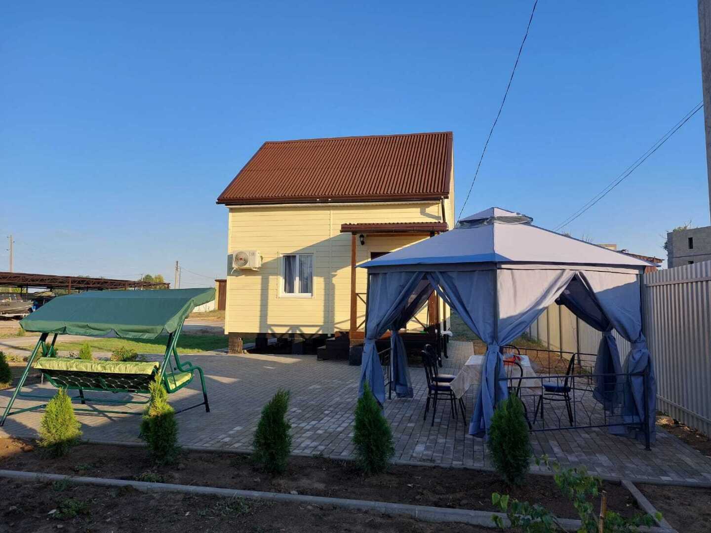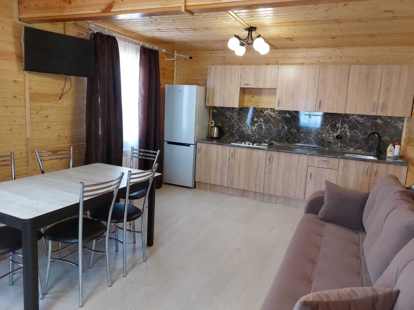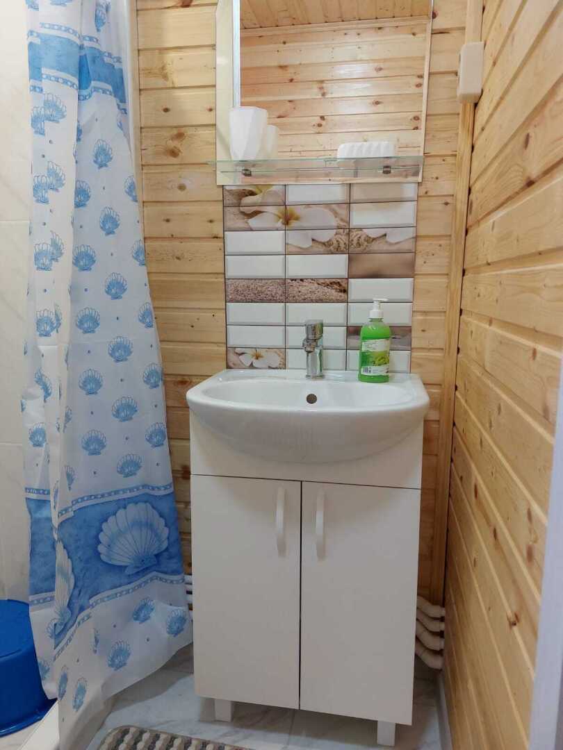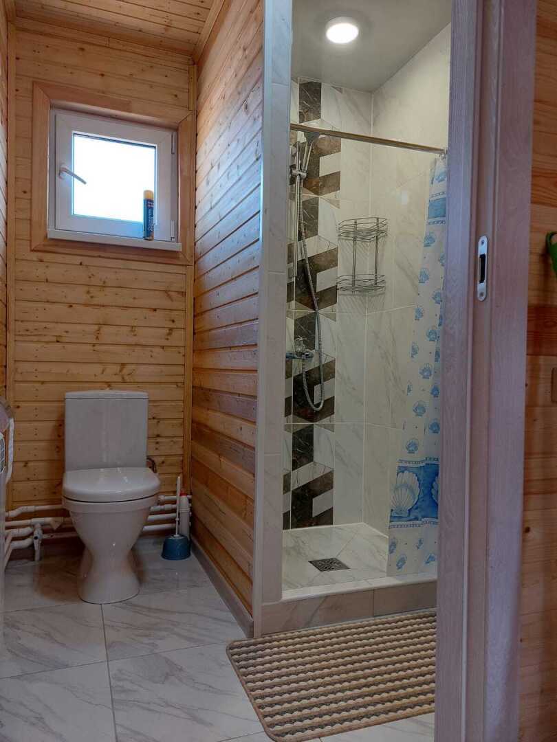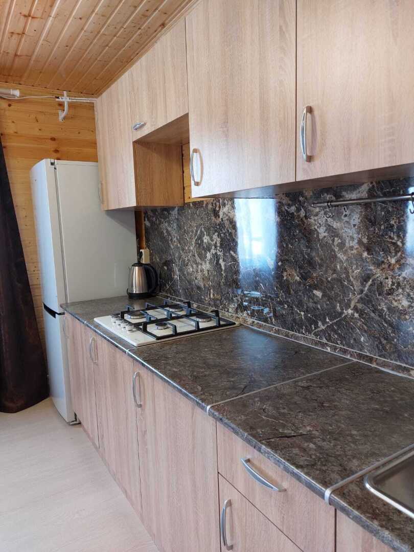 В доме есть своя кухня со всем кухонным инвентарем и посудой, туалет с душевой кабинкой, а самое главное в доме есть сплитсистема. Вся мебель новая, все чисто, сразу было видно, что здесь любят встречать гостей. Красота!