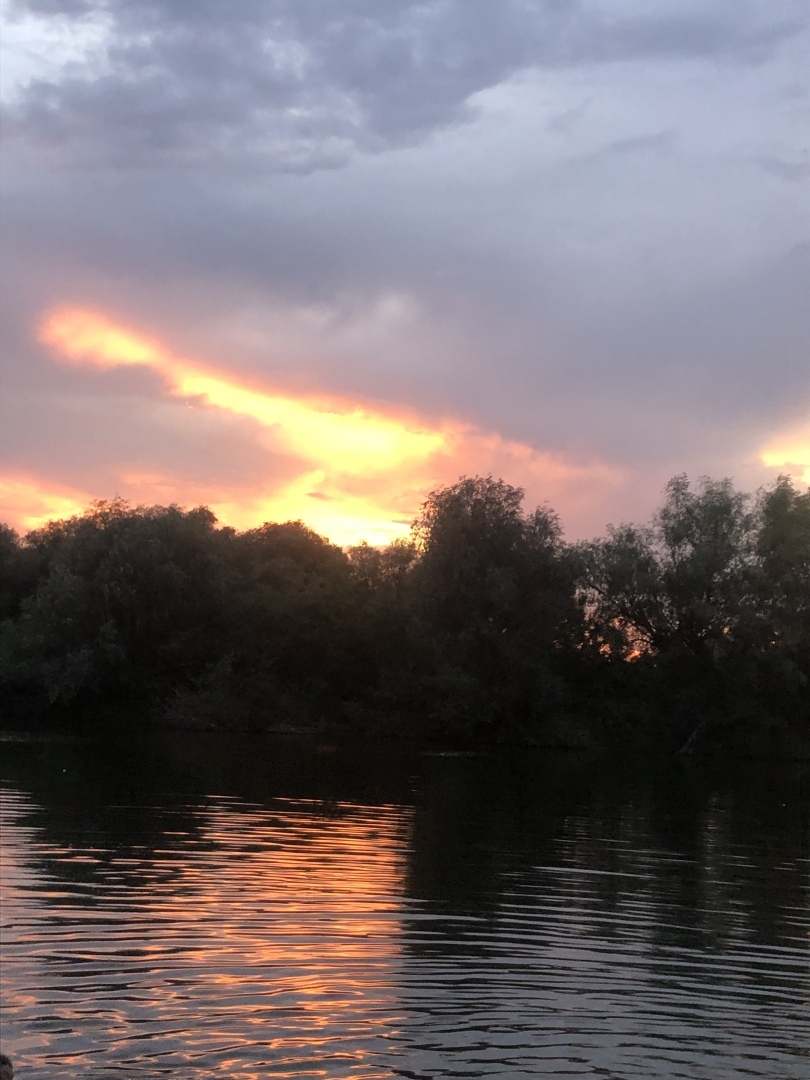 Впечатлений масса!!! Не перестаю удивляться красоте своего края и чудесному перевоплощению: слева степь и полупустыня, справа ошеломительные пейзажи легендарной реки Волга, притоки и косы со своими золотыми песками, затоны. Берега в яркой сочной зелени, от которой веет прохладой. Мы остановились в одном из затонов, Дмитрий дал всем удочки. И целый час раннего утра мы посвятили рыбалке.