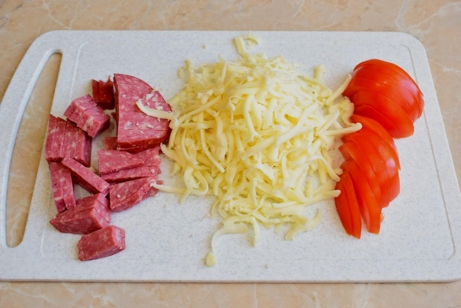 - Соус для пиццы (можно использовать готовый или приготовить самостоятельно из томатов или томатного пюре).