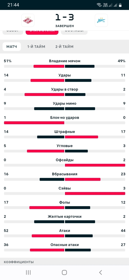 Посудите сами, за первый тайм по ударам 7-2 в пользу Зенита, XG у Спартака составил сотые доли. Конечно, именно в такой игре Абаскалю потребовались эксперименты с тактикой, по сути Спартак начал играть лишь во втором тайме, когда пошли моменты и были некоторые шансы. Неплохой гандикап был дан Зениту изначально, целый первый тайм, плюс невезение, первый гол Зенита рикошетом от Джикии, травма Мозеса. Но везет, как известно, сильнейшим.